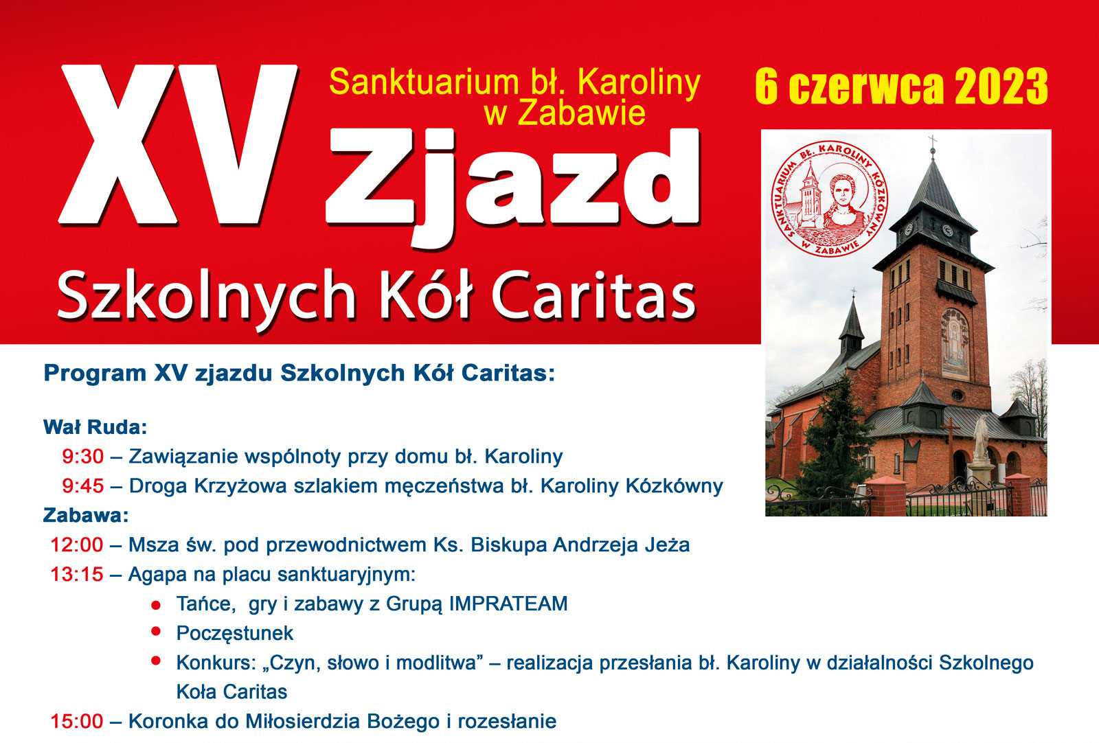 Już 6 czerwca zapraszamy wolontariuszy, opiekunów i asystentów na XV Zjazd SKC do Sanktuarium bł. Karoliny w Zabawie.