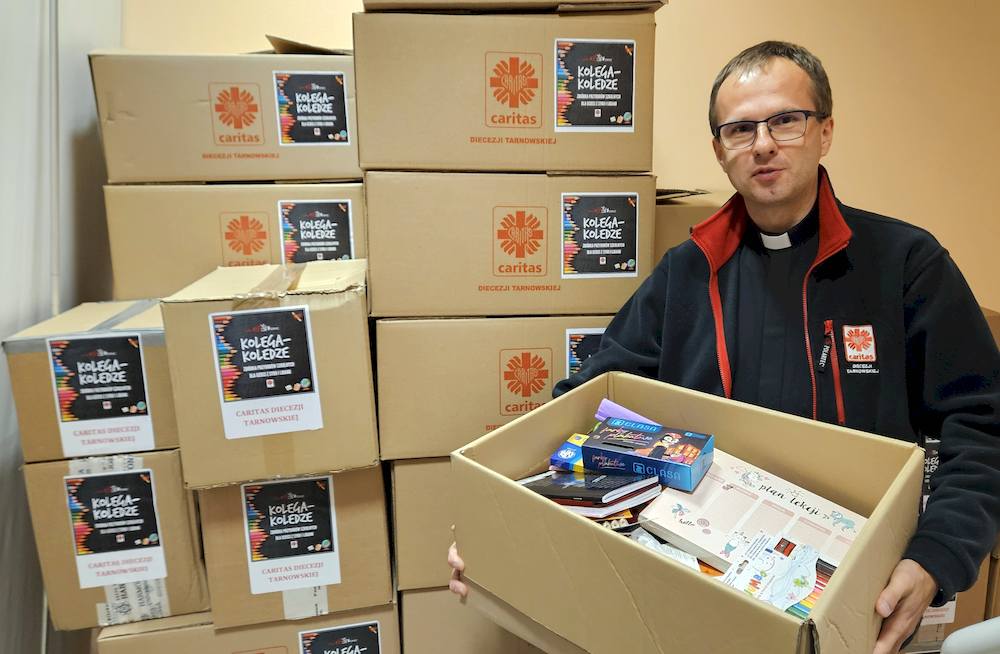 1,5 tony przyborów szkolnych zapakowanych w 130 kartonów przekazały Szkolne Koła Caritas Diecezji Tarnowskiej dla dzieci z Syrii i Libanu.
