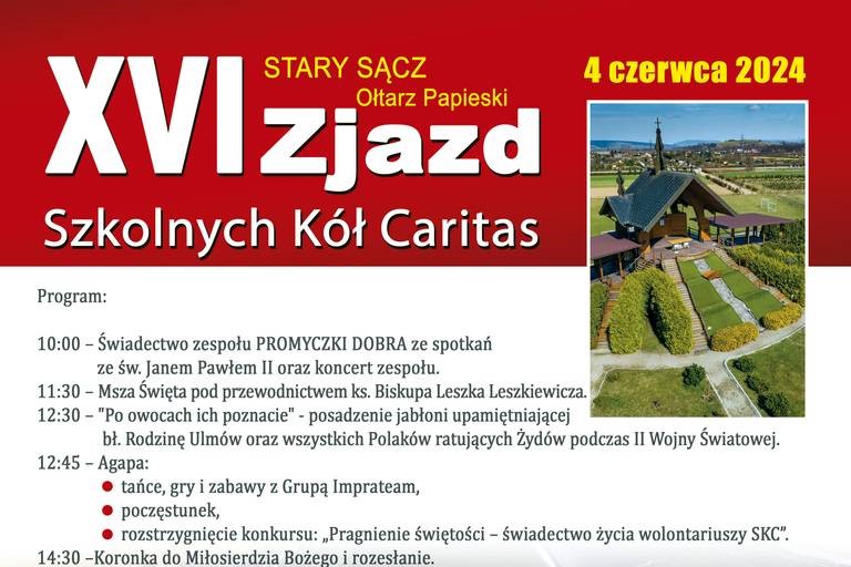 Caritas Diecezji Tarnowskiej po raz szesnasty organizuje Zjazd Szkolnych Kół Caritas. W tym roku – z racji 25 rocznicy wizyty św. Jana Pawła II w Starym Sączu - odbędzie się on 4 czerwca przy Ołtarzu Papieskim na starosądeckich błoniach.