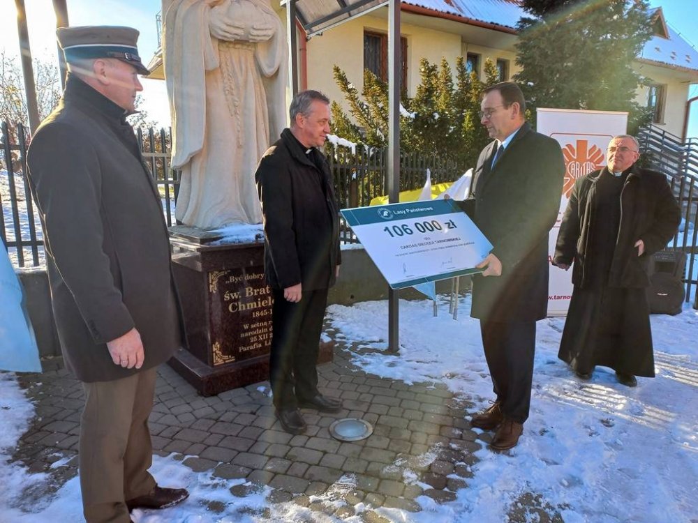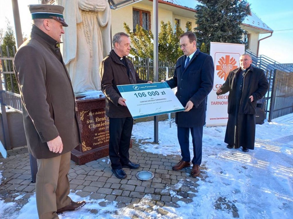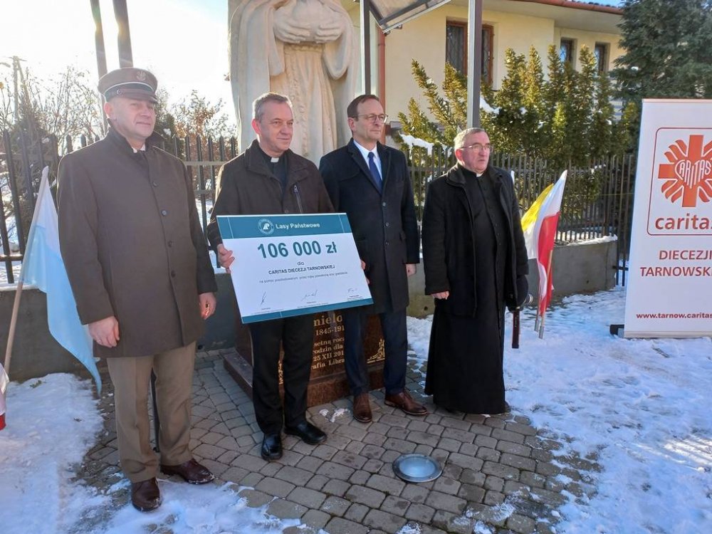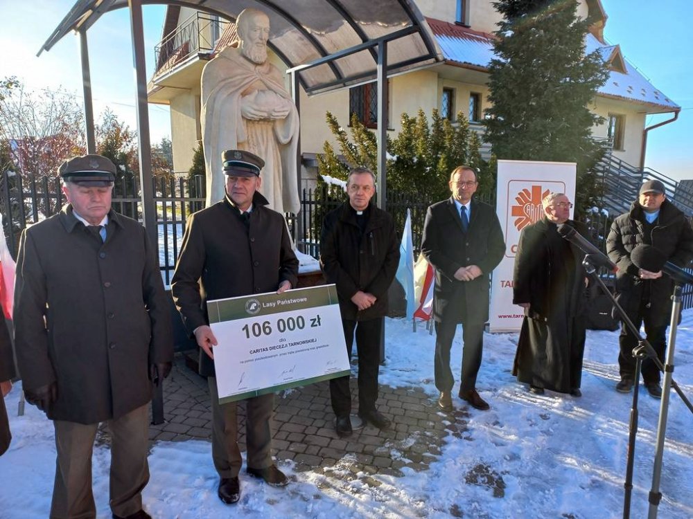 Lasy Państwowe przekazały wsparcie dla osób pokrzywdzonych przejściem trąby powietrznej przez Librantową i Koniuszową. 106 tysięcy złotych trafi na początku do Caritas. Organizacja charytatywna diecezji tarnowskiej rozdysponuje te pieniądze do osób, które najbardziej potrzebują pomocy.