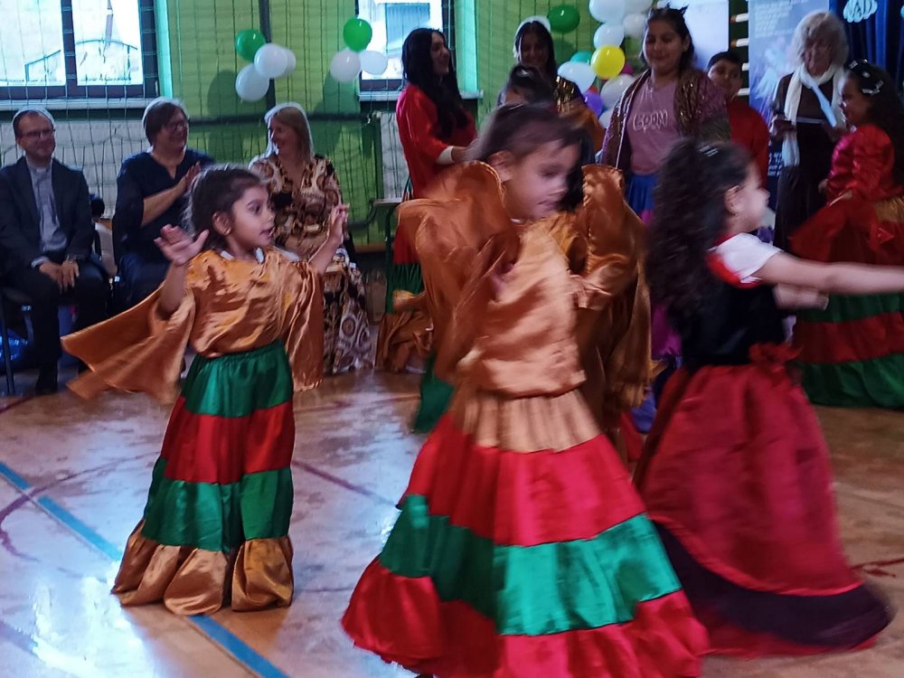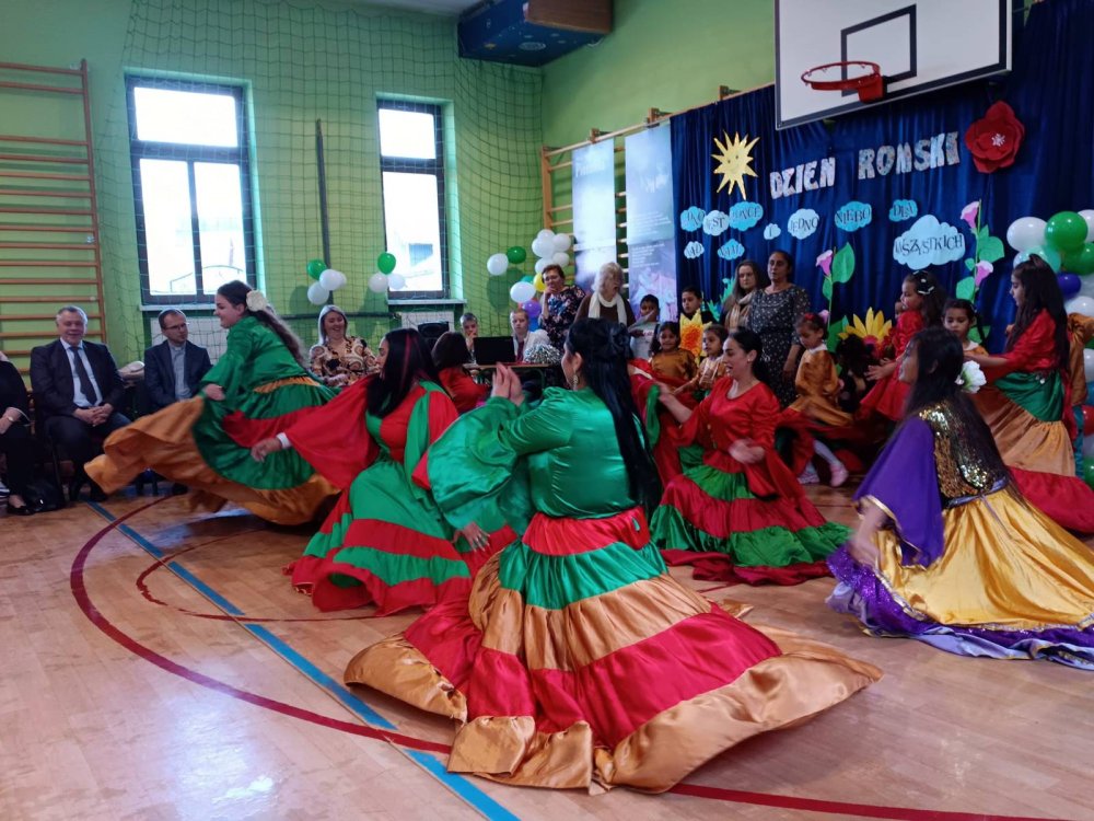 Wydarzenie rozpoczęło się o godzinie 10:00 w sali gimnastycznej, gdzie zgromadzili się uczniowie, nauczyciele, rodzice oraz zaproszeni goście. Szczególną atrakcją dnia była wizyta grupy artystycznej ze świetlicy Ćawengry w Koszarach pod kierownictwem pani Agnieszki Kapturkiewicz, która odsłoniła swoje talenty i zaprezentowała barwne oraz pełne pasji przedstawienie artystyczne, obejmujące pokazy tradycyjnych tańców romskich, śpiew oraz elementy teatralne. Ich występ spotkał się z entuzjastycznym przyjęciem publiczności i był pięknym świadectwem bogactwa romskiej kultury.